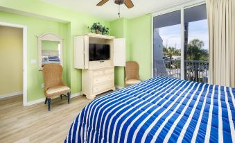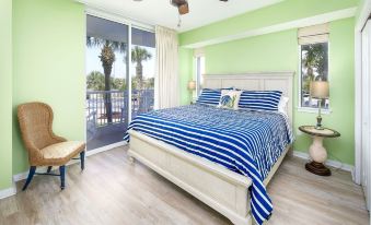 Our peaceful and inviting nautical condominium is perfect for an amazing bay and beach vacation. With a great location on the surreal Emerald Coast, a 700 foot Lazy River, you are sure to come back year after year. This unit is a ground floor unit/lanai where guests can sun or step outside the gate into the lazy river with a gorgeous bay side backdrop. The waterfall pool, gradual entry pool and two large hot tubs provide a variety of activities for water lovers. The patio/sunning decks in this water area provide both shade and sun for people of all ages. Large lounge chairs, tables & chairs, umbrellas are provided for your leisurely days spent by the lazy river. Grills w/ tables are provided in the green areas behind the lazy river. There is also a walkway for strolling alongside the bay and marina. Free beach service is provided when you go to the ocean. A toddler pool, hot tub, and Destin West's largest pool and exercise facility are the additional amenities found on the beach side. You can easily access the beach side by walking the sky bridge from bay to beach, or you can drive to the round-about in front of Destin West Beach Side, unload your family and beach equipment, park your car in the shaded parking deck and walk from there to the beach.