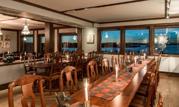 Fantastisk utsikt från matsalen över siljan.