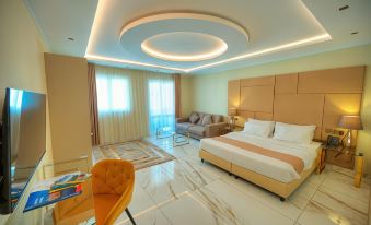 Do pokoju przylega taras na dachu, z którego roztacza się piękny widok. Dostępne są również takie udogodnienia rekreacyjne, jak sezonowy basen odkryty.